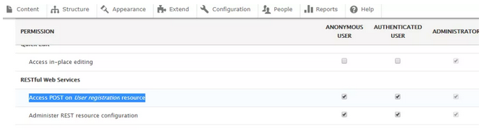 设置允许匿名用户利用 POST 来访问 /user/register 。