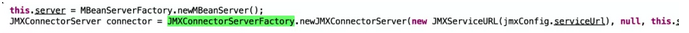漏洞触发点在JmxMonitoredMap.class中的newJMXConnectorServer函数中,此函数可以让服务器与新的rmi服务器相连接,并且每次调用此函数都会产生一个不同的对象。所以当攻击者通过覆盖传入自己的rmi服务器地址,目标服务器就会与之相连,执行内部的命令。