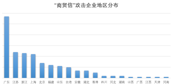 根据统计数据,有超过1000家企业受到此次攻击影响,其中近一半以上分布在广东、江苏、浙江和上海四地,其中广东占比超过30%。特别是广东深圳和东莞由于制造业和外贸行业密集,成为本次攻击受害最严重的区域。