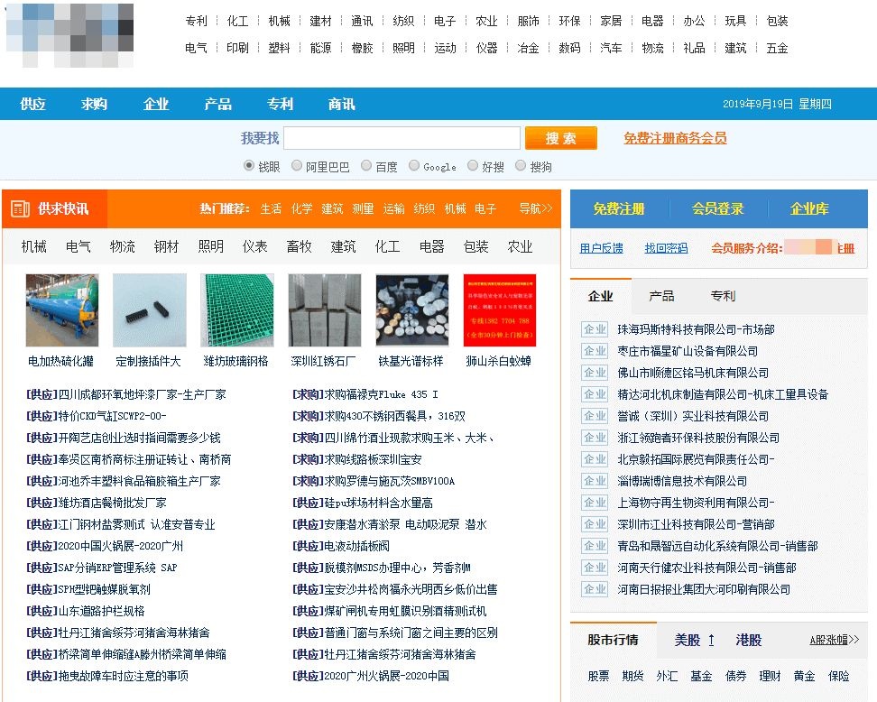 可以看到这个默认的邮箱采集网站“**网”(www.*****.biz)是一个贸易信息发布平台,大量厂商(机械、化工、电气、能源、仪器等行业)在该网站上发布等各类产品的供应或求购信息。而每一条信息都会附带厂商的电话、邮编、邮箱等联系方式,“****邮件群发器”正是从这些信息中获取了大量的邮箱地址。