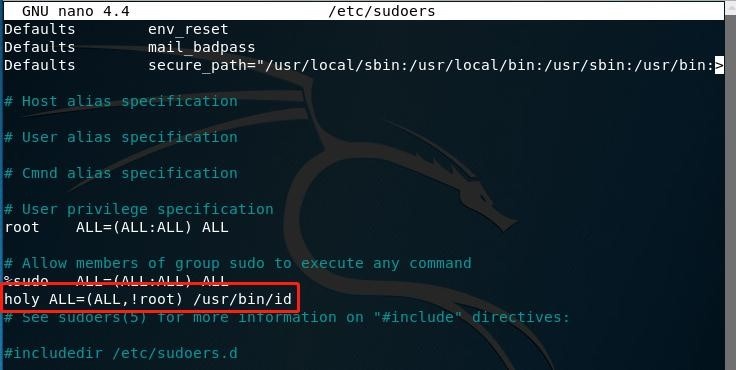 myhost bob =/new_type/aqtg/20191015/ /(ALL, !root) /usr/bin/vi