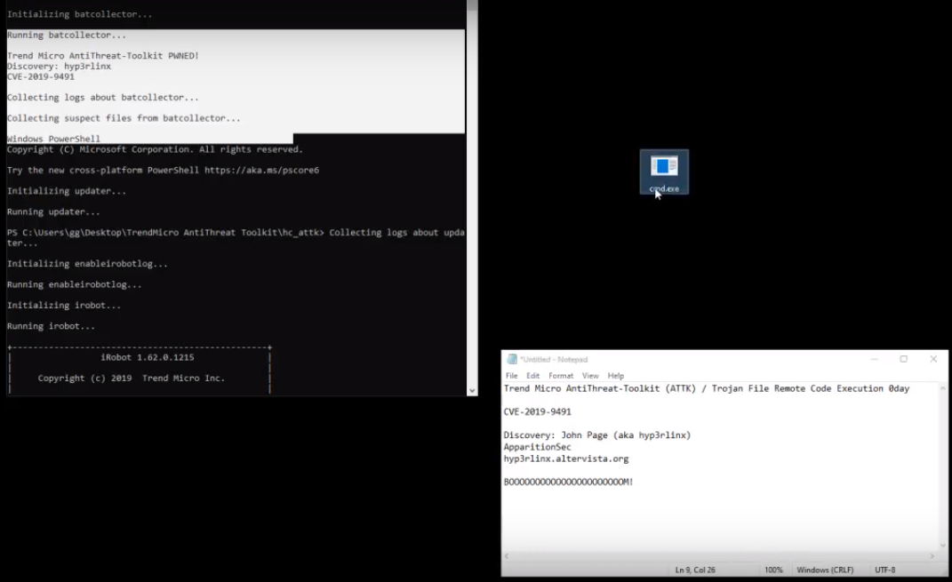 CVE-2019-9491由Hyp3rlinx发现。ATTK可被诱骗执行任意软件,包括恶意软件在内。当恶意软件被扫描时,如果文件名是 cmd.exe 或 regedit.exe,那么恶意软件就会被执行。