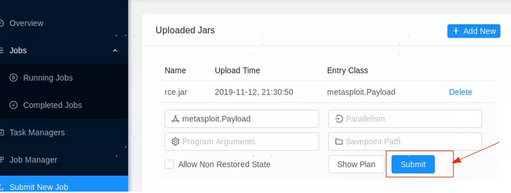 Apache Flink Dashboard 中可上传恶意jar包并触发恶意代码执行。由于Apache Flink Dashboard 默认无需认证即可访问,因此该漏洞可用作获取shell。