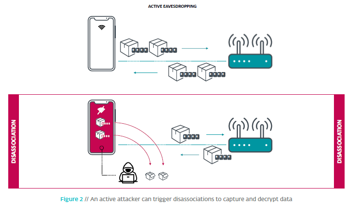 研究人员表示,Kr00k 攻击一次可暴露最多32KB 数据,相当于约2万个词语。攻击者可发送一系列管理框架触发攻击并开始收集数据,如密码、信用卡信息或其它用户通过WiFi发送到互联网上的任何东西。