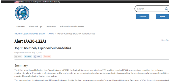 https://www.us-cert.gov/sites/default/files/publications/AA20-133A_Top_10_Routinely_Exploited_Vulnerabilities_S508C.pdf