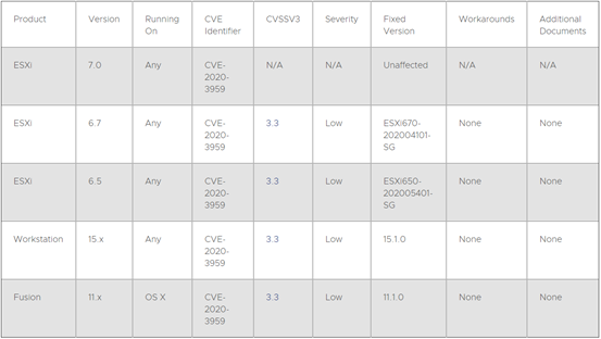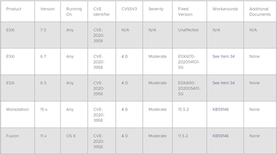 2020-05-28 VMware发布漏洞公告