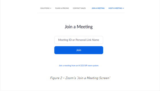 用户在此输入会议ID并加入Zoom会话。攻击者可以通过诈骗网站诱使受害者加入会话,但受害者并不知道该邀请是否来自合法请求。