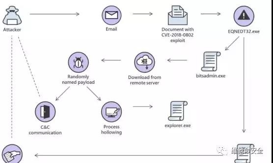 Windows Defender ATP团队发现一个针对亚洲能源、食品和饮料行业的新恶意攻击活动,基于对该活动的目标选择、攻击链以及工具集的分析,研究团队认为该活动是由APT组织Tropic Trooper发起的。攻击的初始向量是一个利用了Office公式编辑器漏洞CVE-2018-0802的恶意文档,攻击者随后使用bitsadmin.exe从远程服务器下载并执行随机命名的payload。研究人员认为这些payload的主要目的是窃取数据。
