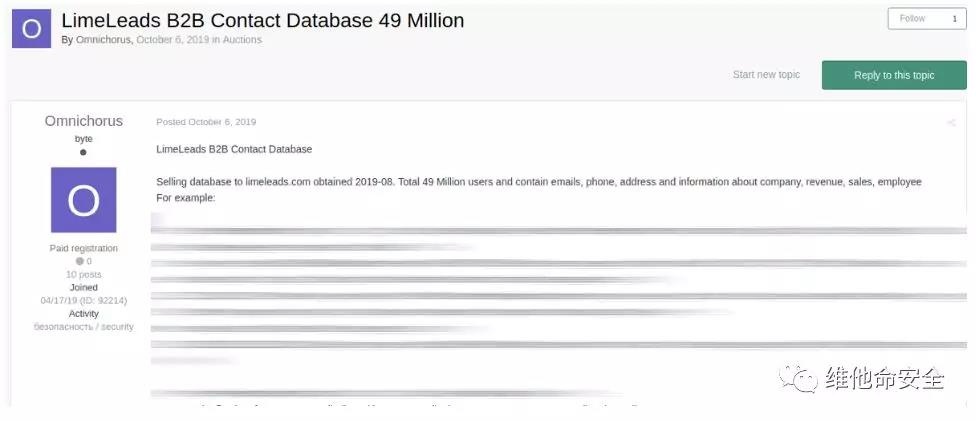 3、美国LimeLeads公司4900万条用户记录在暗网论坛出售
