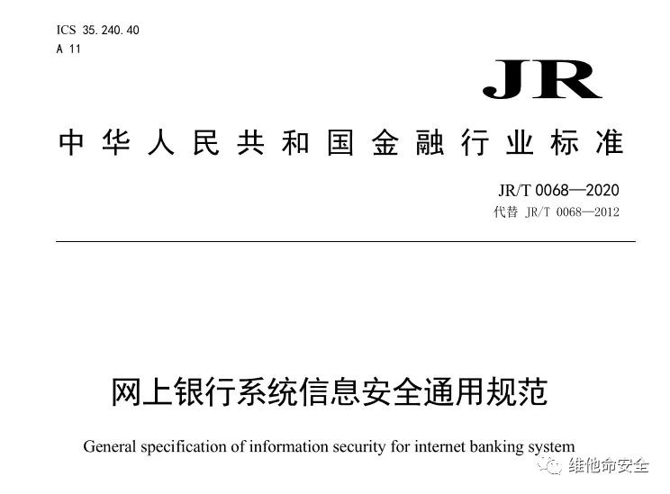 1、中国人民银行发布2020版《网上银行系统信息安全通用规范》