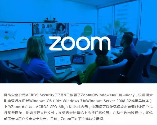 5、ACROS披露Zoom的Windows客户端中0day,可执行任意代码