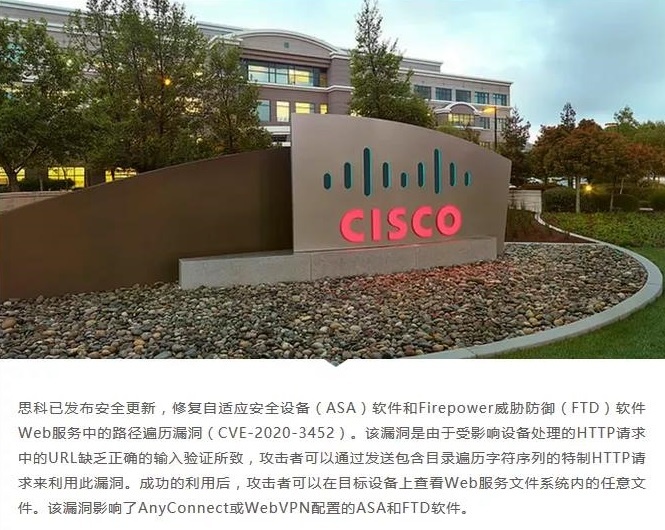 5、思科发布安全更新,修复ASA和FTD中的路径遍历漏洞