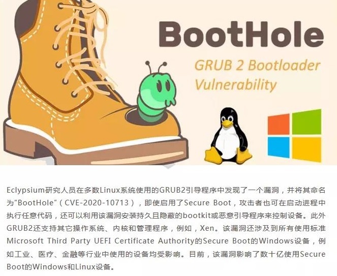 5、GRUB2中漏洞BootHole影响数十亿Windows和Linux设备