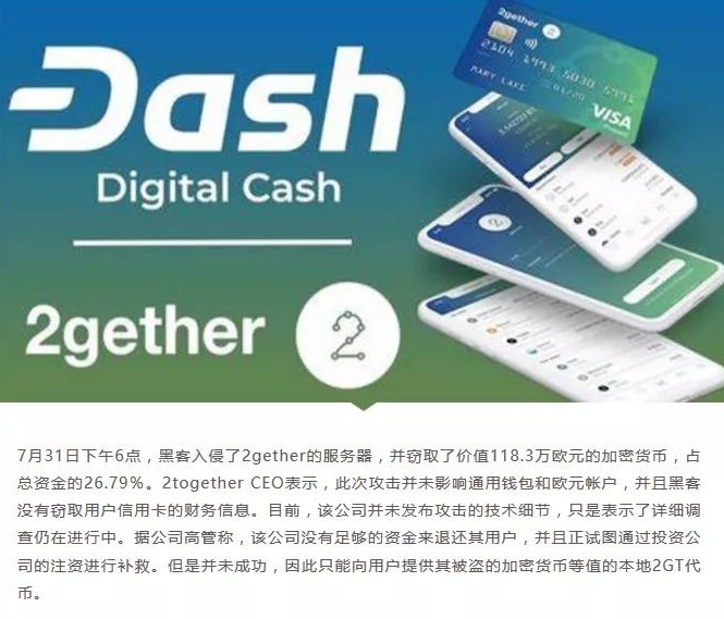 3、黑客入侵2gether服务器,窃取价值120万欧元的加密货币