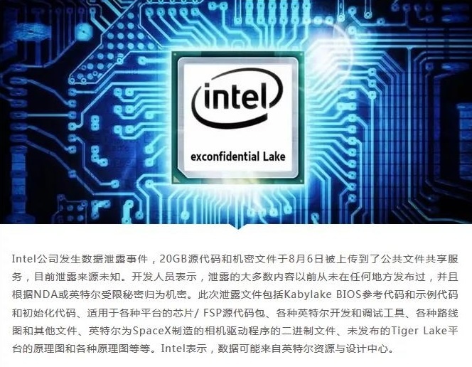 5、Intel 20GB源代码和机密文件泄露,目前来源未知