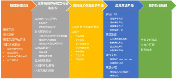 威廉希尔500欧洲指数信息应急管理体系服务主要分为项目准备阶段、应急预案体系建立与咨询阶段、应急技术保障服务阶段、应急演练阶段、服务验收阶段五个阶段。通过实施五个阶段的服务内容,可为客户建立完整的应急管理体系,达到动态的、制定化的应急管理方式。同时围绕安全事件的全过程管理,用最低的成本达到可接受的信息安全水平,从根本上保证业务的持续性。
