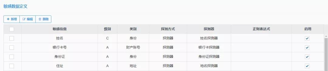 包括资产智能发现和敏感数据发现,资产智能发现,可以帮助用户准确梳理数据库服务器资产情况并识别表名和资源账号等信息,快速建立审计策略;敏感数据发现,通过配置敏感数据类别,使用敏感数据探测器对用户数据库中的敏感信息进行探测,探测结果可转化为审计规则,关注敏感数据的访问与泄露问题。