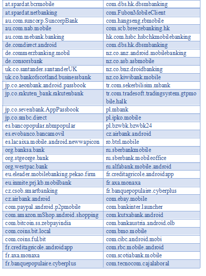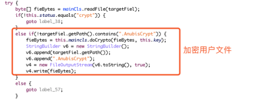 详细分析该恶意代码后发现,该恶意代码新变种可劫持几乎涵盖全世界各大金融机构的手机APP,总数有300多个,涉及中国、美国、英国、日本、中国香港、法国等40多个国家和地区。该恶意代码还具有勒索软件的功能,会使用256位对称密钥对受害用户的手机文件进行加密处理,并且以“.AnubisCrypt”作为加密文件的扩展名,同时还伪造了FBI警告界面通知受害用户以比特币的方式支付罚金方可对文件进行解密。另外,它还能够被用于进行网络间谍活动,例如:监视受感染设备主窗口活动、进行屏幕截图并发送给攻击者、使用内置麦克风监听受感染设备周围环境中的声音等等。