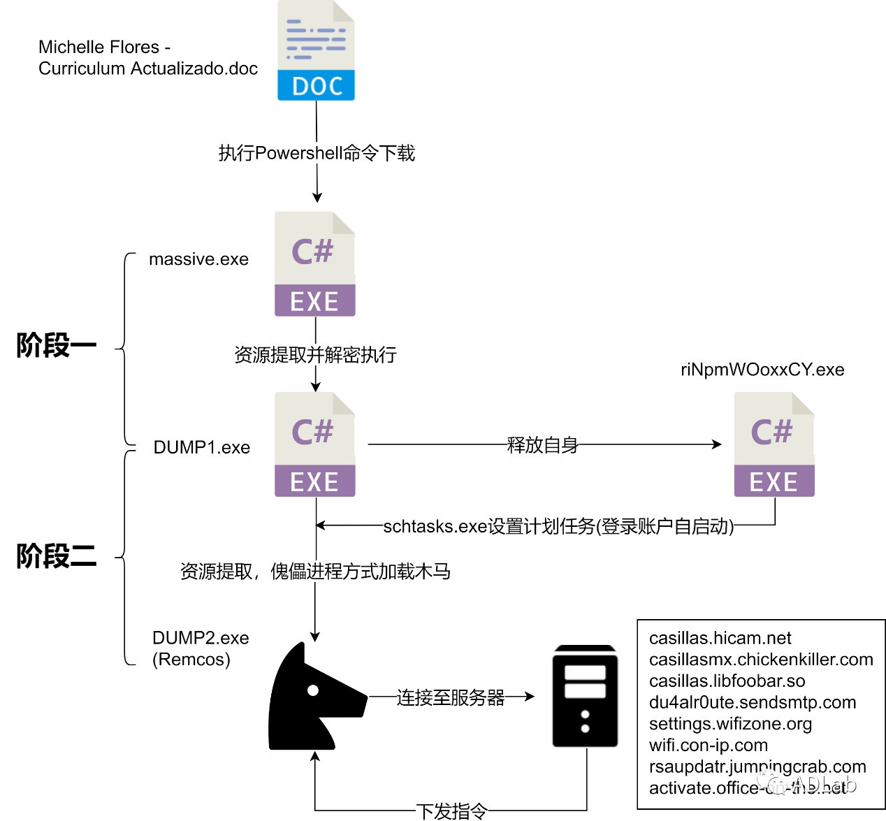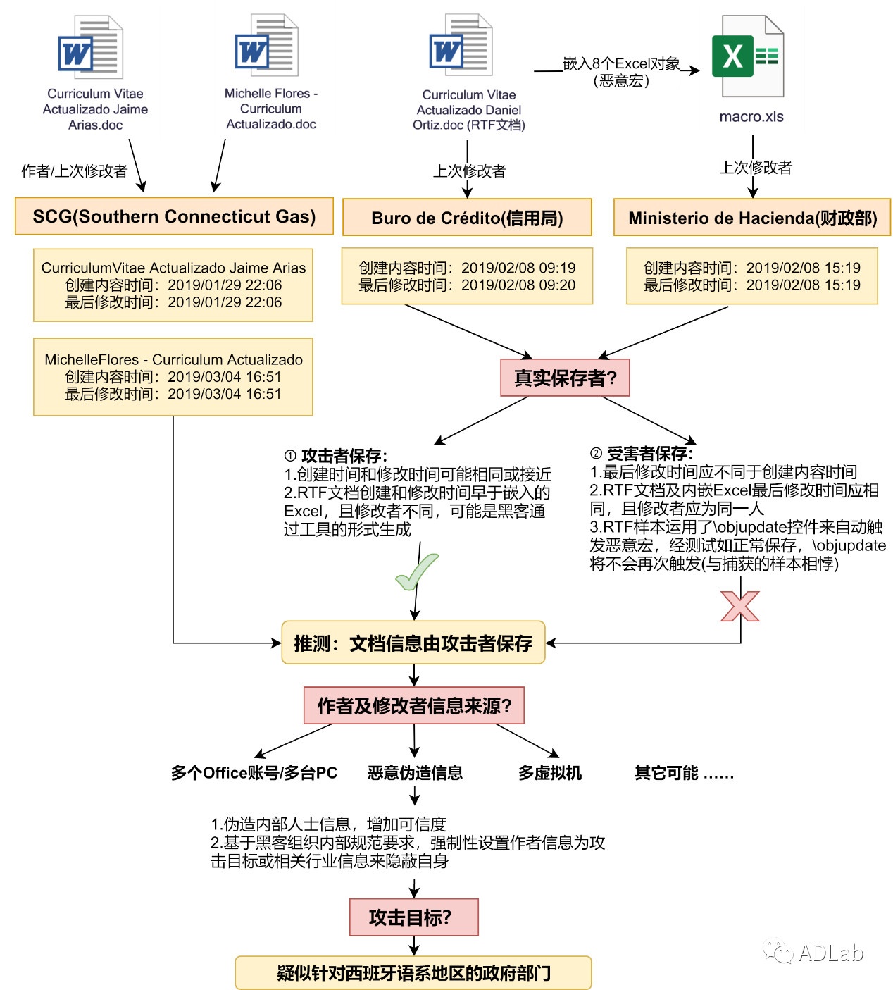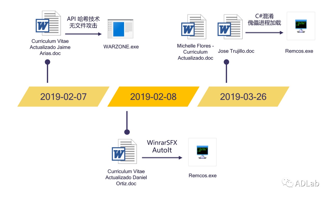 其中,我们对2019年2月7日发现的“Curriculum Vitae Actualizado Jaime Arias.doc”文档进行了详细的分析,并相继捕获到关联文档“Curriculum Vitae Actualizado Daniel Ortiz.doc”和“Michelle Flores - Curriculum Actualizado.doc/ Jose Trujillo.doc”。