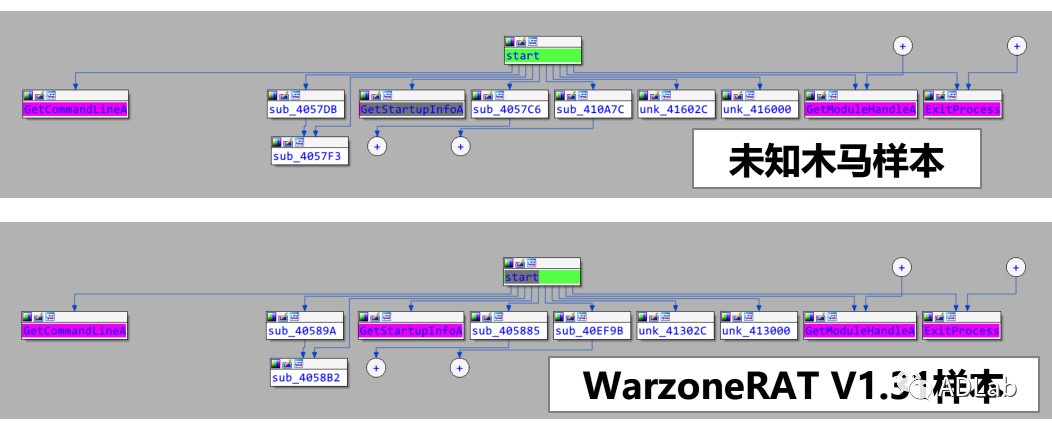 依据以上几点分析,我们认为两者具有高度的一致性。从目前已知的情况看,WARZONE被杀毒厂商广泛的识别为AVE_MARIA,而在深入比对分析后,我们判定黑客组织使用的远控木马正是WARZONE RAT。因此可以将此类包含“AVE_MARIA”字符串的恶意样本家族命名更新为“WARZONE”。