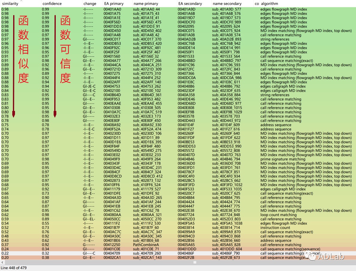 其次,我们通过Bindiff进行了更为精确的对比,在去除部分API干扰并比较分析了可信度高的函数后,发现大量函数完全相同,占比达到80.16%,其余函数则可能因为版本原因略有差别,这也印证了二者间的强关联性。
