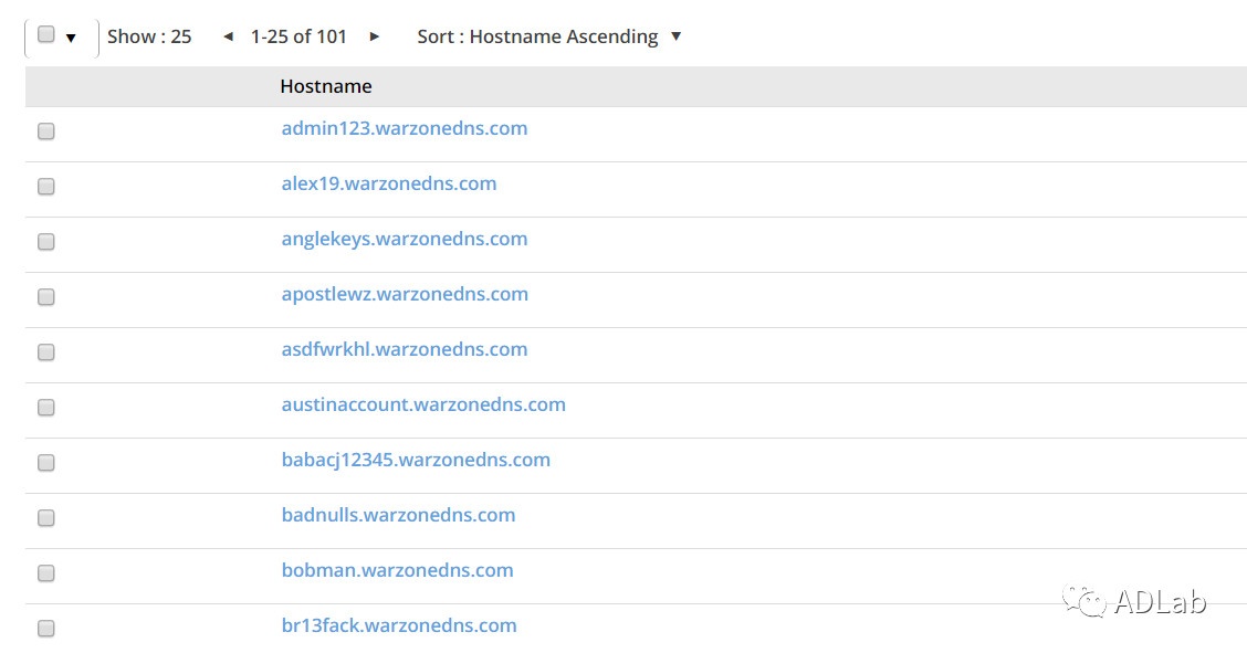 这批域名均为warzonedns.com提供的免费子域名,且大部分关联至恶意样本,这表明大量黑客正在滥用此类服务进行恶意攻击。