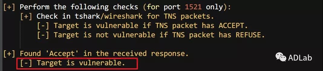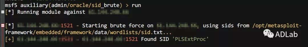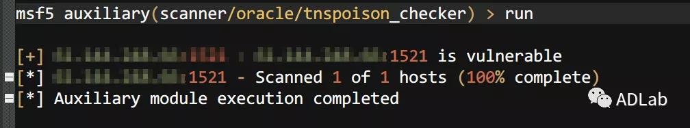 攻击团伙进一步通过Metasploit5渗透测试框架的tnspoison_checker模块对oracle进行了漏洞检测验证。
