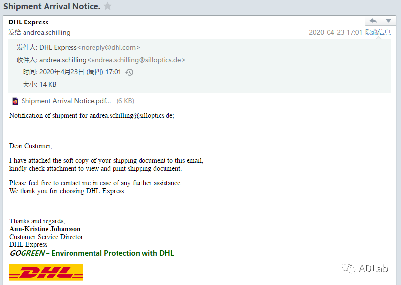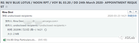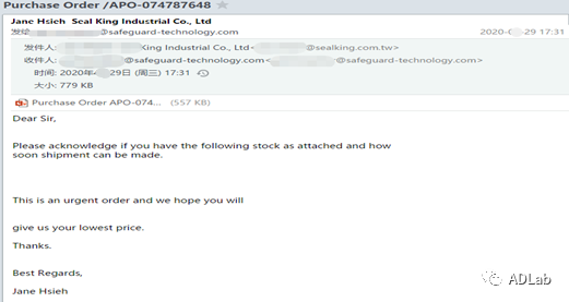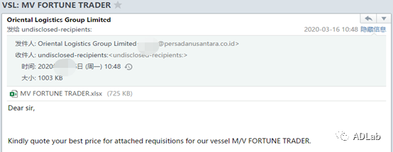 通过分析这些邮箱发件人所属公司的注册信息以及其官网信息,我们发现多数公司网站均为合法网站,由此猜测攻击者使用的这些邮箱,有可能来自被入侵和盗用的合法实体或个人。虽然收件人的信息很多无法看到,但是从邮件的主题以及正文内容不难看出,攻击者企图利用运输货物清单、装箱交货价单、物品到货通知单、海上新订单等邮件向运输商、制造商及其合作商进行有针对性的攻击活动。下面我们从以上邮件中列举一个做简单分析。