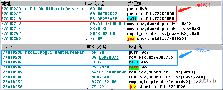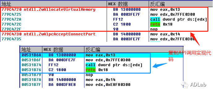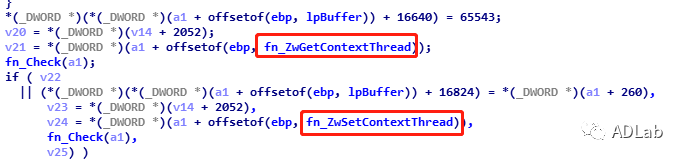 ⑦ 使用ZwGetContextThread和ZwSetContextThread函数,获取和修改挂起的子 线程上下文中寄存器值,以实现重定向到shellcode入口处执行的目的。