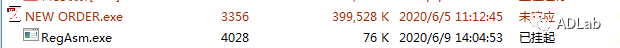 ③ 调用CreateProcessInternal函数以挂起模式创建RegAsm.exe进程。
