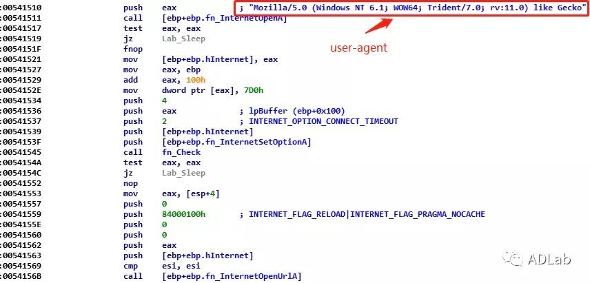 成功添加注册表项后,恶意代码则开始使用winnet.dll库中的Internet API函数从云托管服务器下载加密的payload。