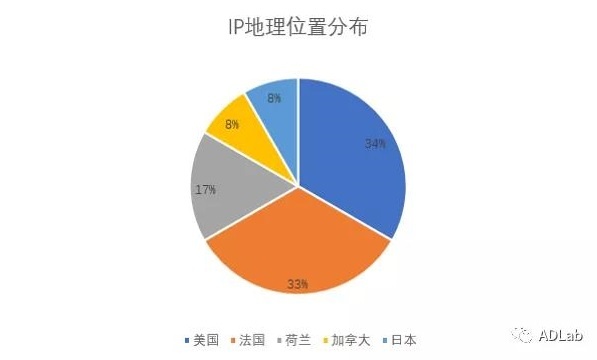 我们将C&C对应的IP地址所属国家和地区进行统计,并绘制其地理位置分布图(如图5-3所示)。整体来看,美国和法国占比率最高,其次为荷兰。