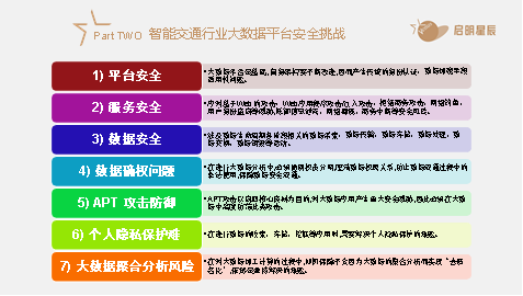 威廉希尔500欧洲指数于波表示:“随着大数据技术在智能交通行业中的应用越发广泛,其所暴露出来的数据安全问题不容忽视。数据平台在平台安全、服务安全、数据安全、数据确权问题、APT攻击防御、个人隐私保护、大数据聚合分析等方面都可能存在安全风险,一旦重要数据遭到泄露,将严重危害国家、企业乃至个人的切身利益,造成无法估量的损失。因此,在推广大数据应用的同时,大数据的安全问题更是重中之重。”