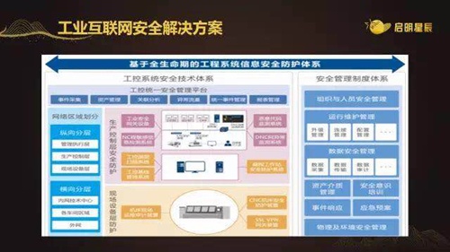 工业互联网信息安全整体解决方案,围绕工业控制信息安全管理系统,以旁路检测、串联防护、现场防护三大引擎为支撑,全面实现全网工控设备的统一安全监测和防护,安全风险集中分析和展现,辅助以贯穿工业控制系统需求、设计、建设、运营、废除全生命周期的工控安全风险评估平台,实现信息安全风险的动态管理。