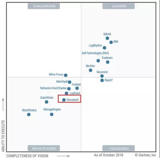 2018年,Gartner大幅提高了SIEM产品的入围门槛,从往年的200多项考核指标增加到了近330多个考核指标,考核重心更加聚焦于安全厂商产品在新技术领域ABC(AI、Big Data、Cloud)的发展、全球市场战略以及客户满意度等方面的综合实力。