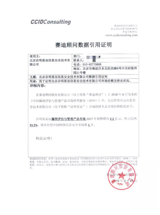 ● CCID :威廉希尔500欧洲指数天镜脆弱性扫描与管理系统市场排名第一