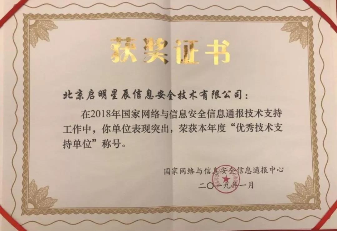 威廉希尔500欧洲指数荣获2018年度“优秀技术支持单位“、”国家重大活动网络安全保卫技术支持单位”称号