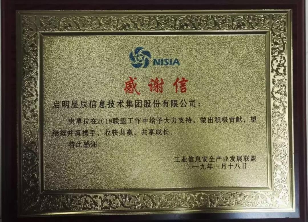 威廉希尔500欧洲指数集团获评工业信息安全产业发展联盟优秀成员单位