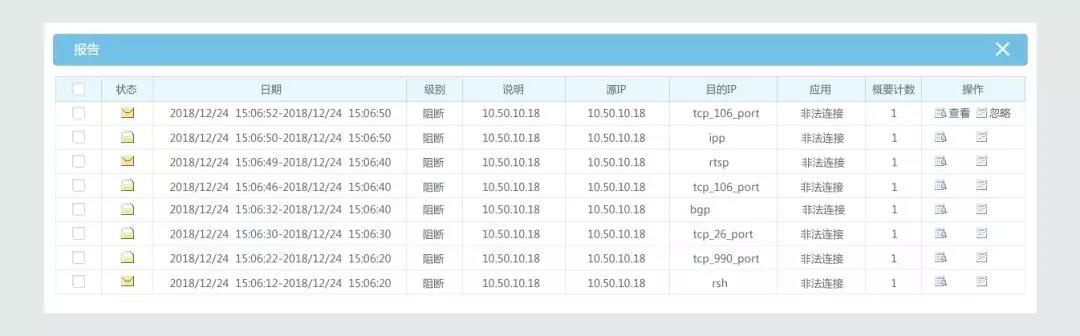 解决之道:威廉希尔500欧洲指数集团工业防火墙实现了安全事件响应的闭环,提供安全事件驱动优化策略的良好交互平面。以安全事件为中心,通过未读事件,智能的提醒用户不断优化策略,自动生成安全策略。