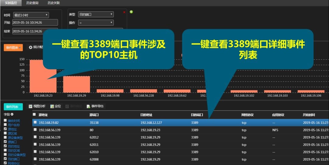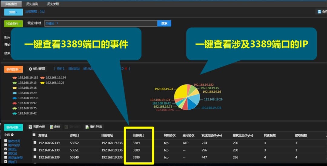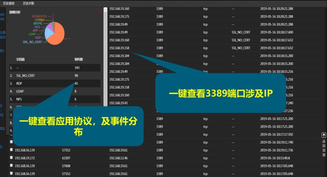从网络流量中,发现3389端口访问关系,一键助力客户查看涉及IP、一键查看3389端口数量,一键查看访问关系~~~方便客户快速定位风险隐患。