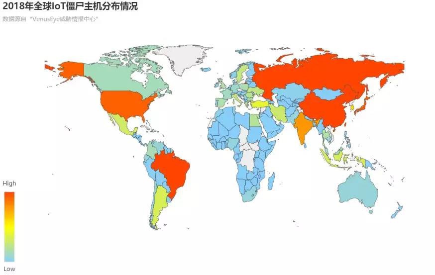 2018年捕获到的各类受僵尸网络控制的IoT设备中,中国数量最多,受害最严重。