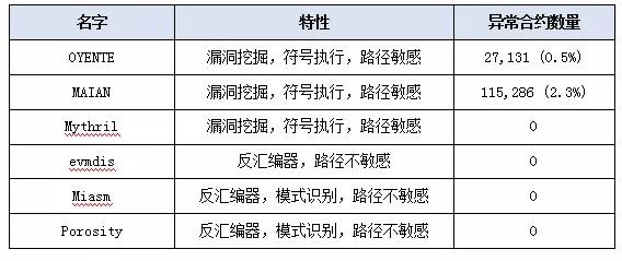 通过对每个工具进行全部以太坊区块链智能合约的实验,得出以下结论: