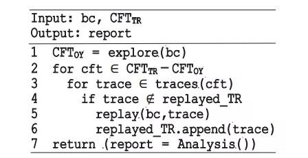 为了验证基于执行trace的有效性,选择了OYENTE工具进行增强实现和验证,增强的具体算法如下图所示。