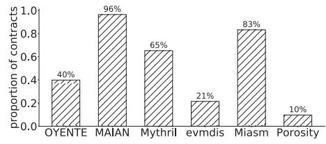 (3)上述的6款主流分析工具仅针对1.7%的智能合约才能识别出相同的控制流转移。