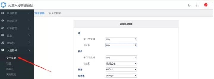 可通过安全策略配置,仅允许可信管理设备IP访问视频网络的60001端口,其他IP均不允许访问,并关注官网特征库,及时升级针对此攻击的最新特征库。