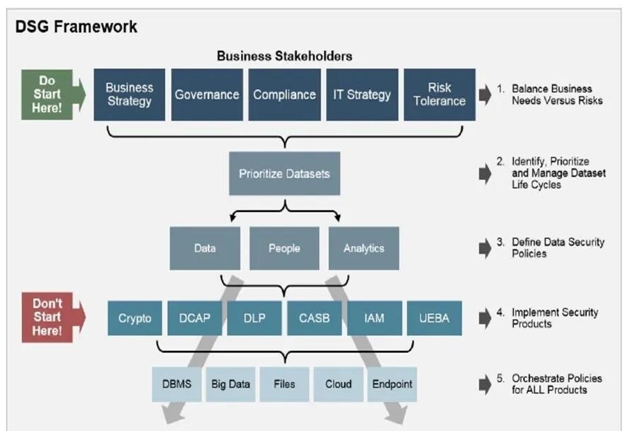 Gartner在2017年开始关注数据安全治理,提出了数据安全治理框架,分为5步: